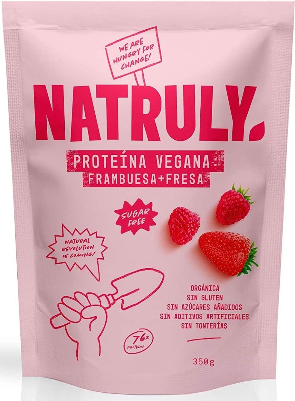 La Proteína Vegana Natruly Frambuesa y Fresa BIO es una fuente de proteína 100% vegetal con alto contenido proteico, elaborada a partir de guisante, arroz y semillas de cáñamo. Su combinación ofrece todos los aminoácidos esenciales, facilitando la recuperación muscular y el mantenimiento de la masa magra.
